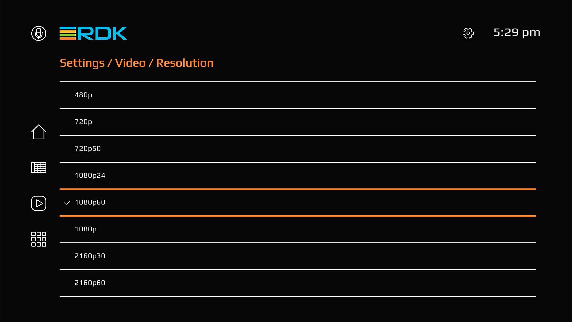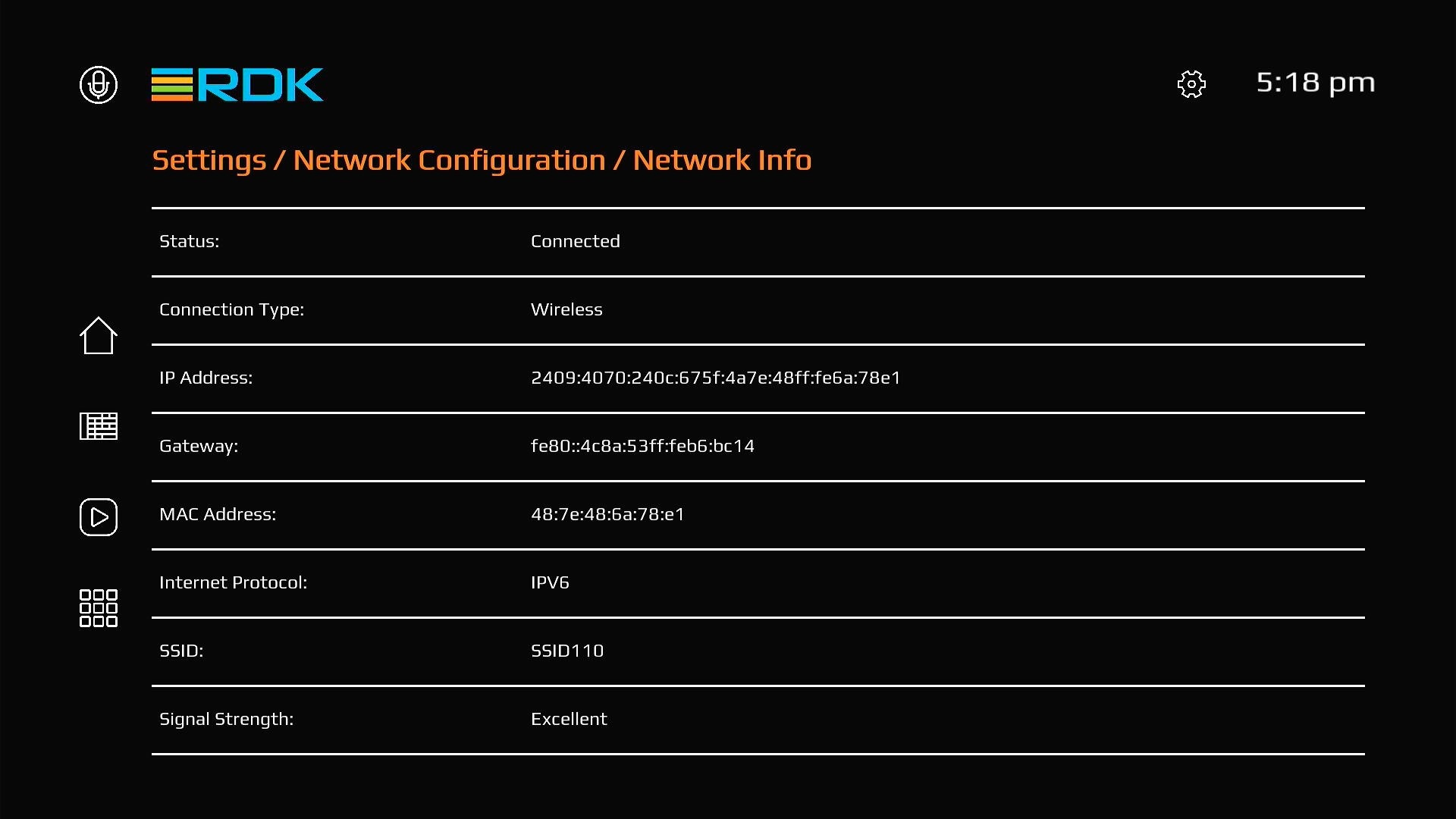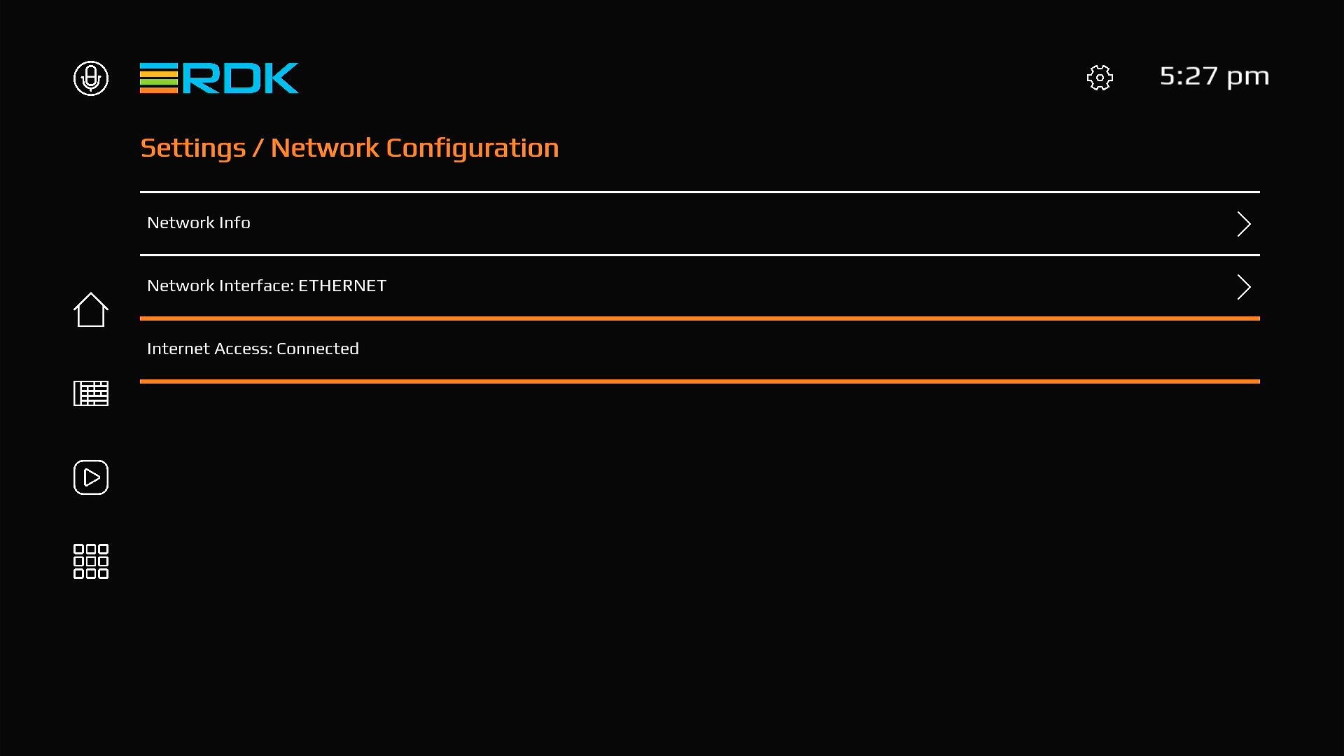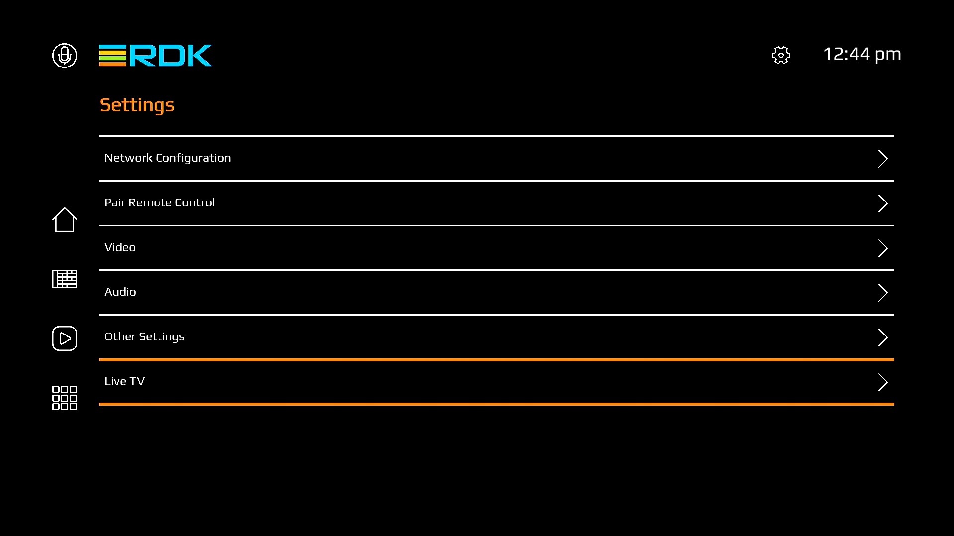 The RDK Accelerator Home UI version 5 is the latest version (rdk-next/accelerator-home-ui/settings.json platformSettings version) of the RDK reference UI which provides a full featured UI with a modern minimalistic design using a dark theme.