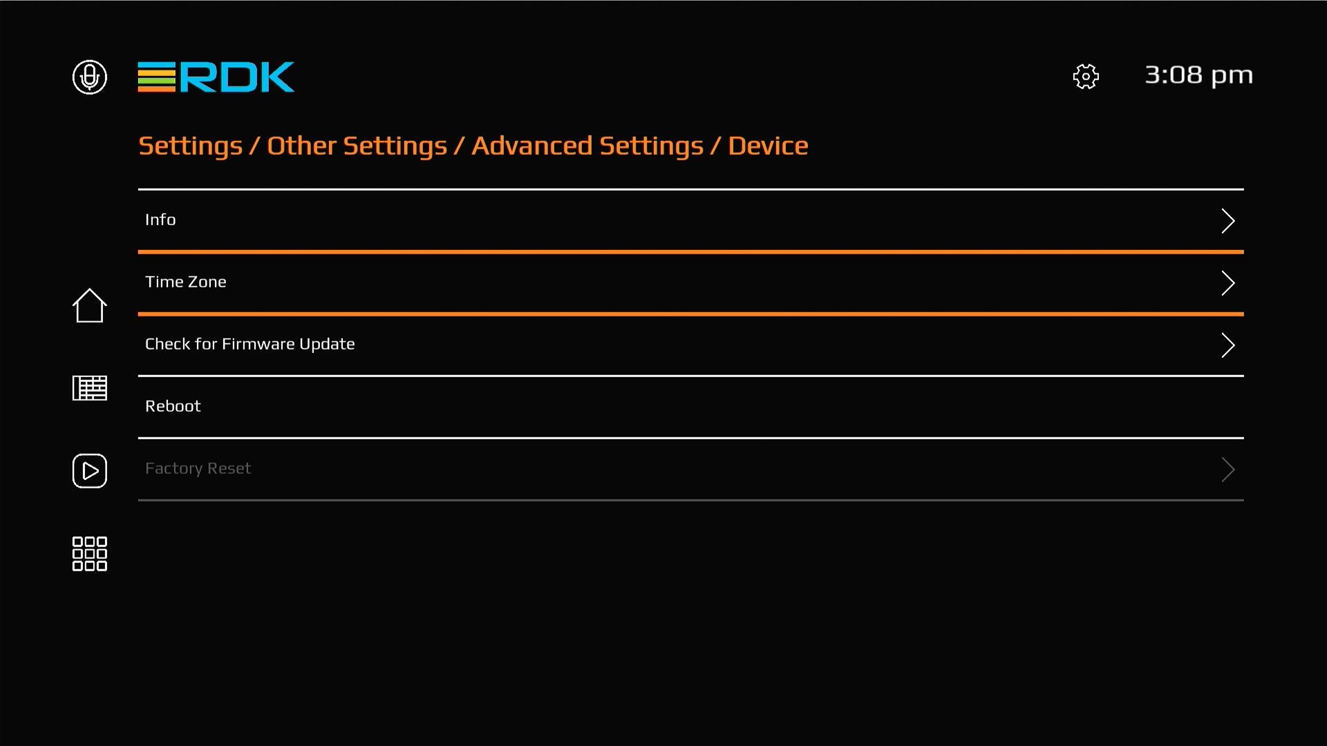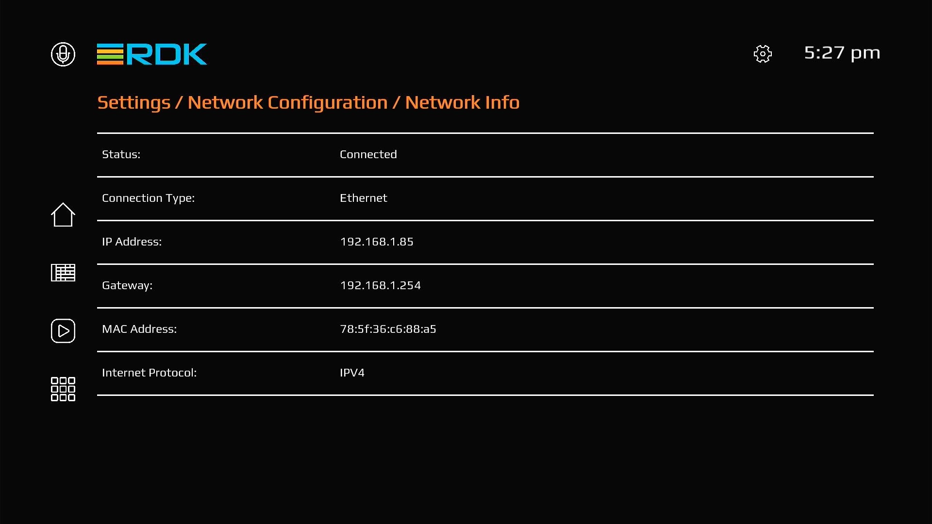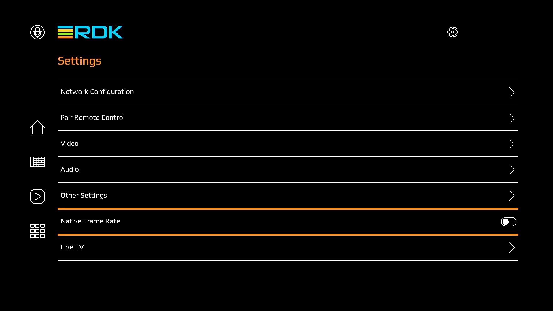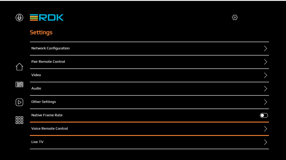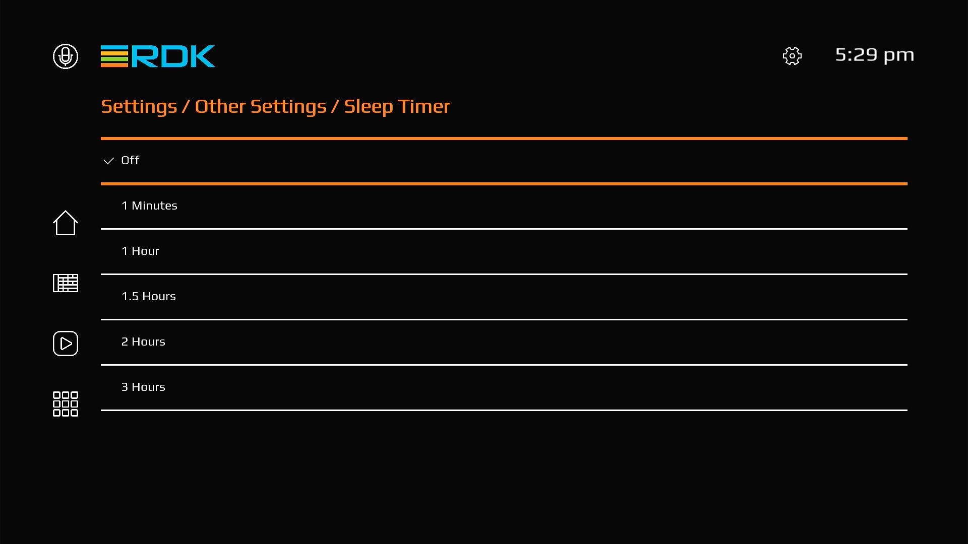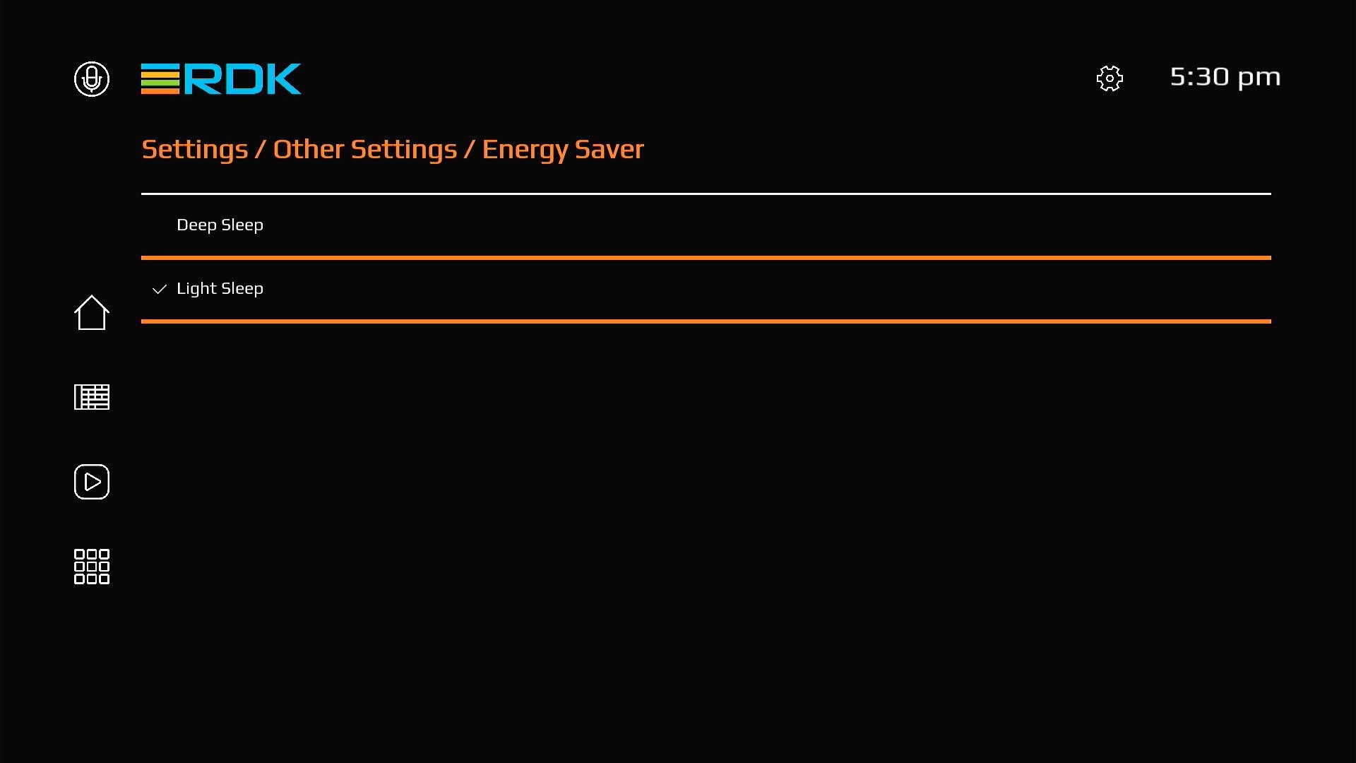 The RDK Accelerator Home UI version 5 is the latest version (rdk-next/accelerator-home-ui/settings.json platformSettings version) of the RDK reference UI which provides a full featured UI with a modern minimalistic design using a dark theme.