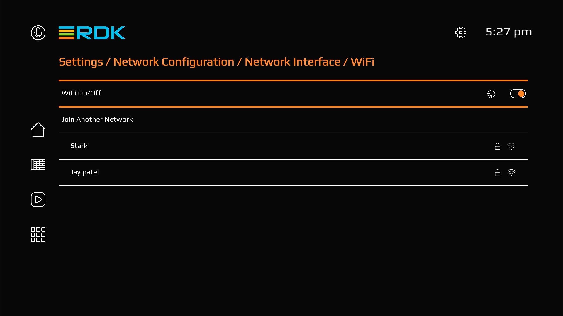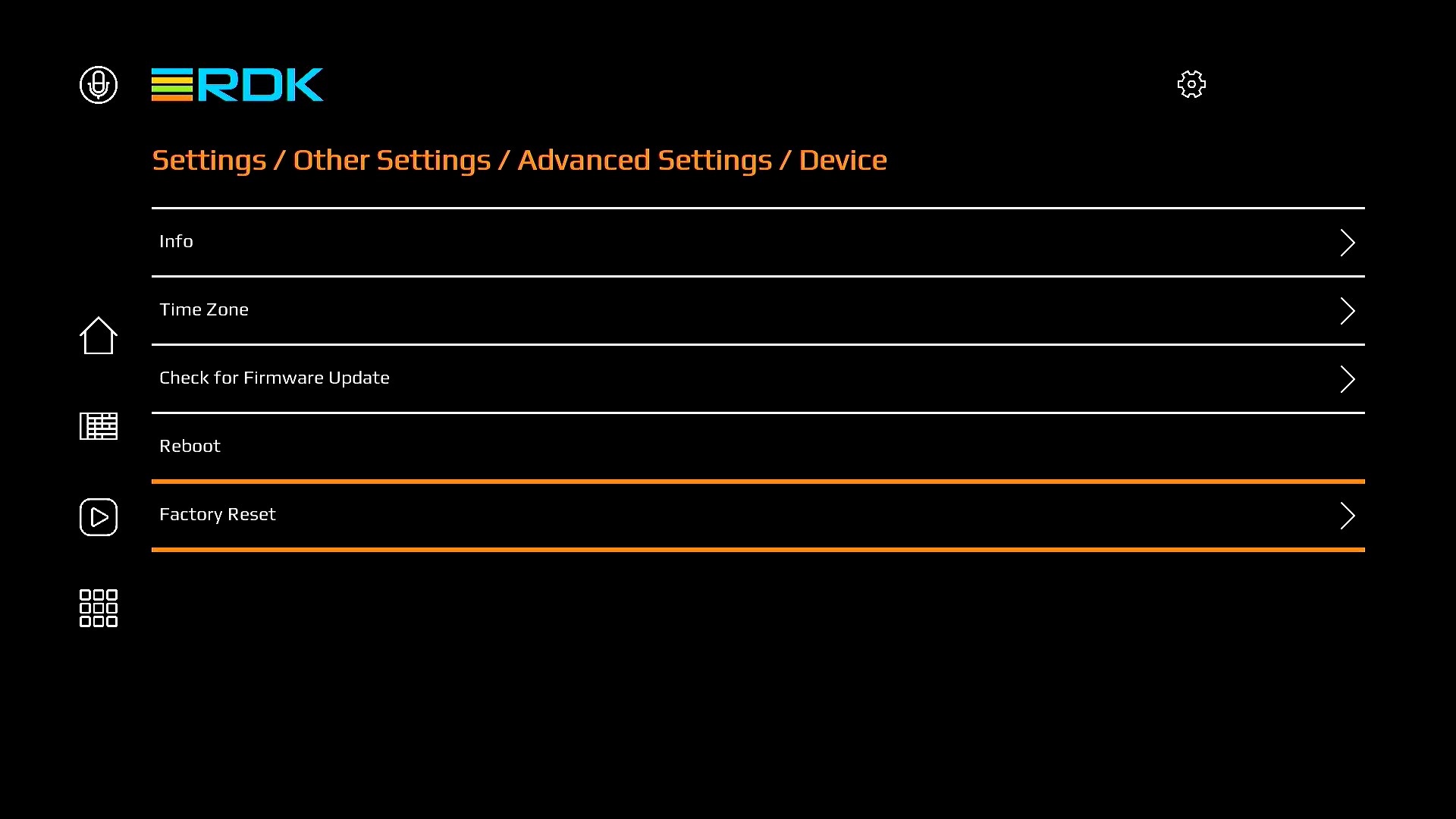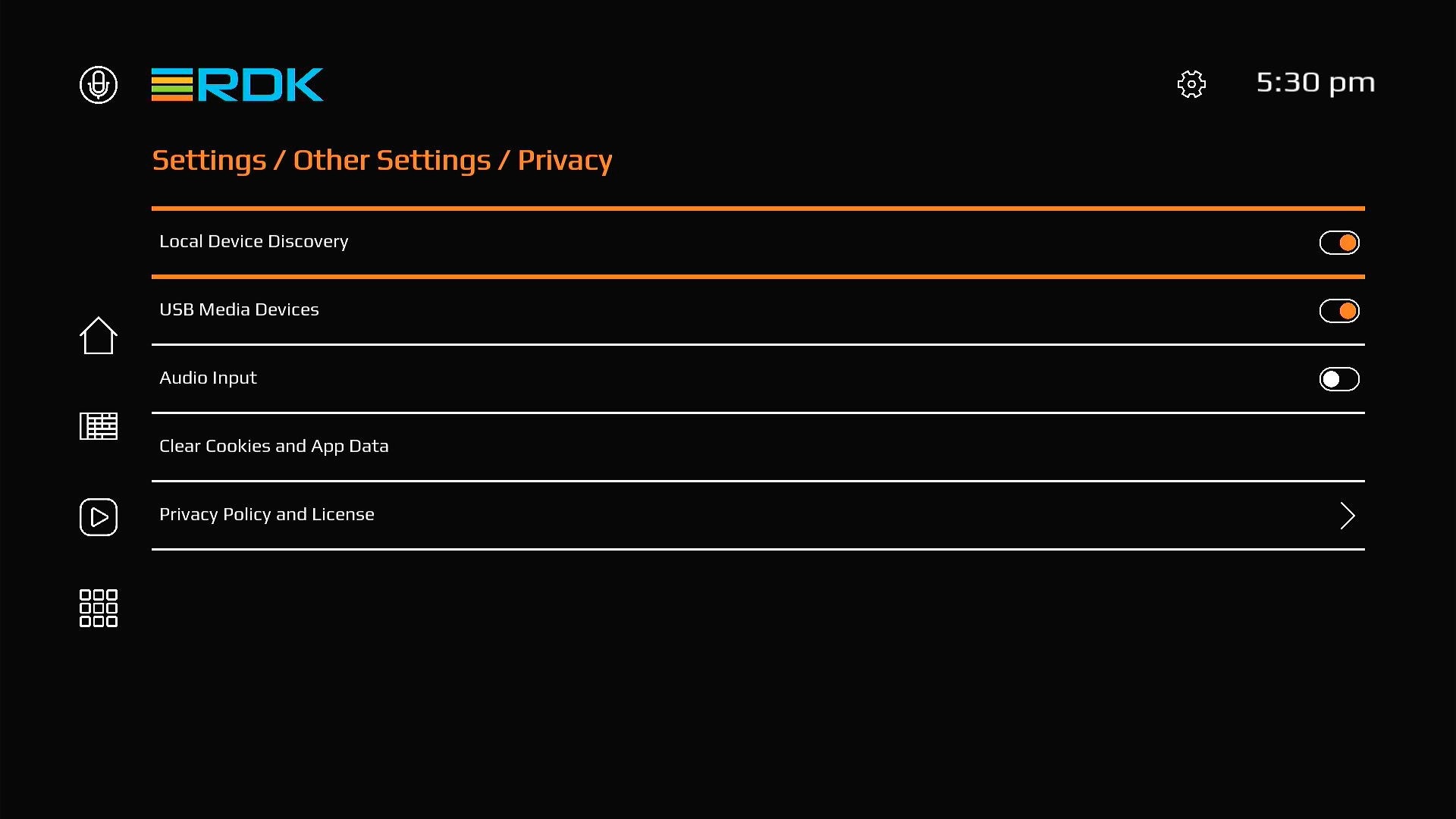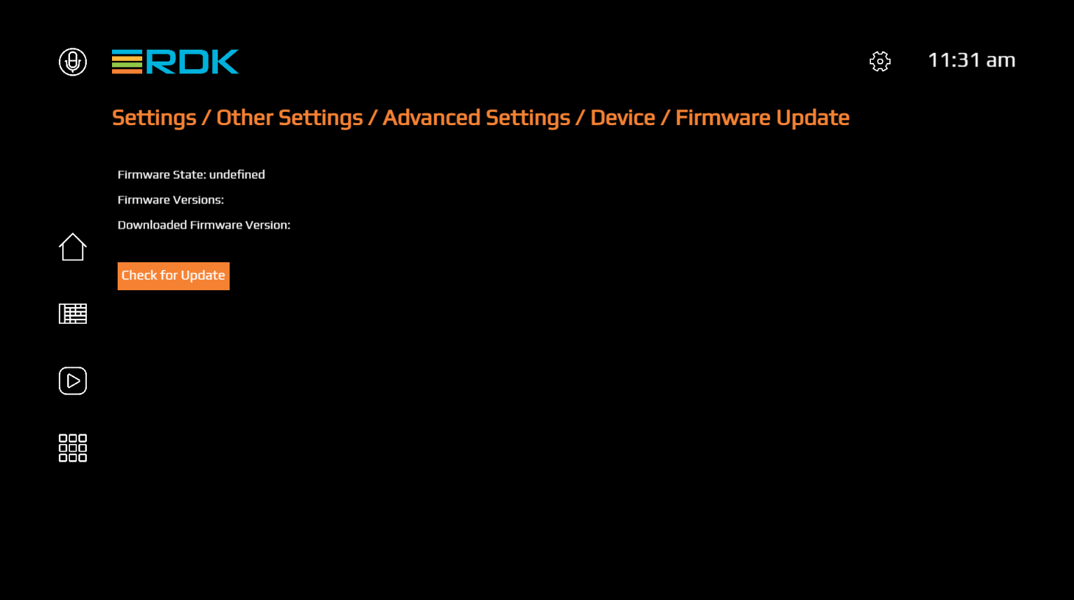 The RDK Accelerator Home UI version 5 is the latest version (rdk-next/accelerator-home-ui/settings.json platformSettings version) of the RDK reference UI which provides a full featured UI with a modern minimalistic design using a dark theme.