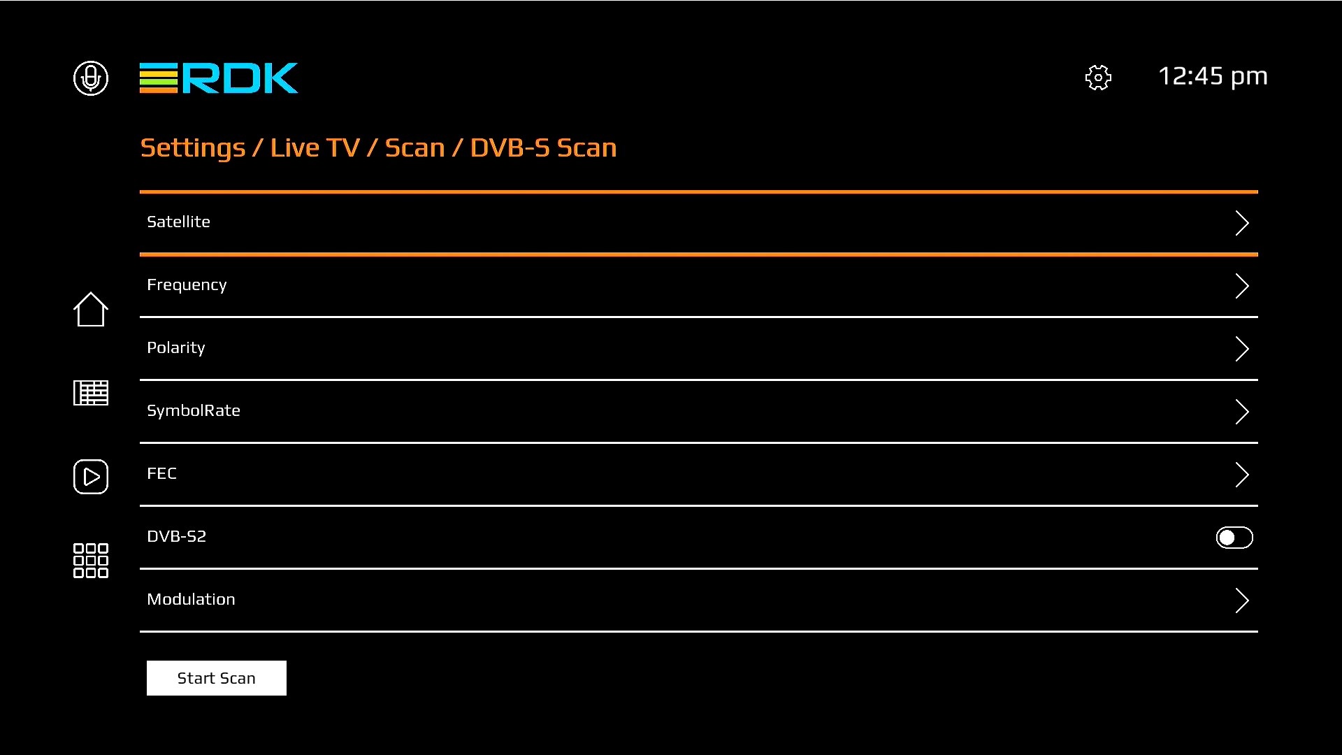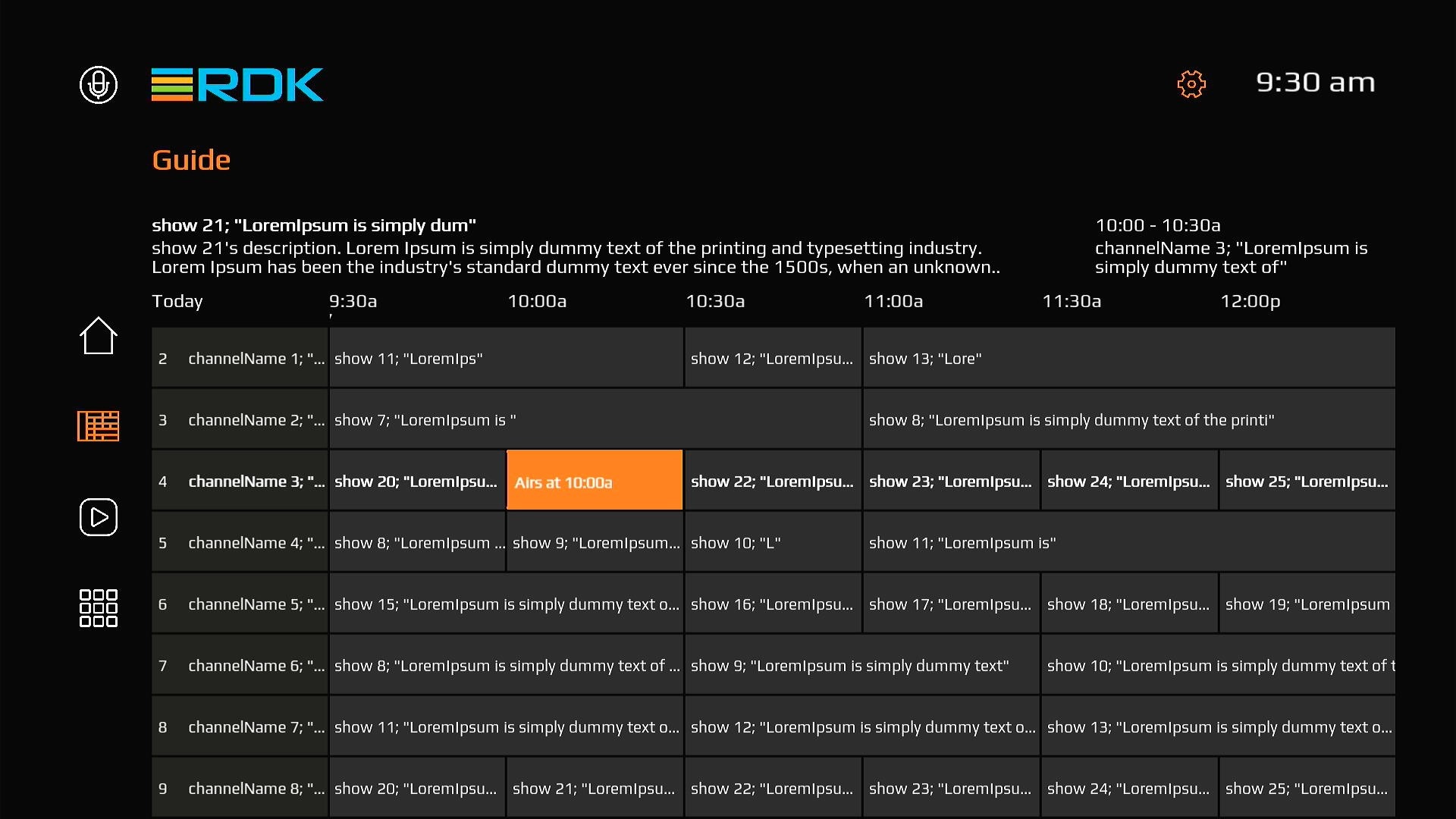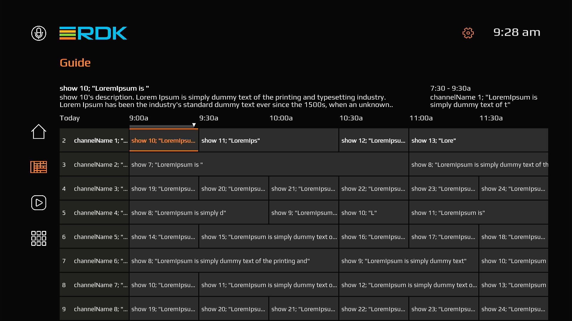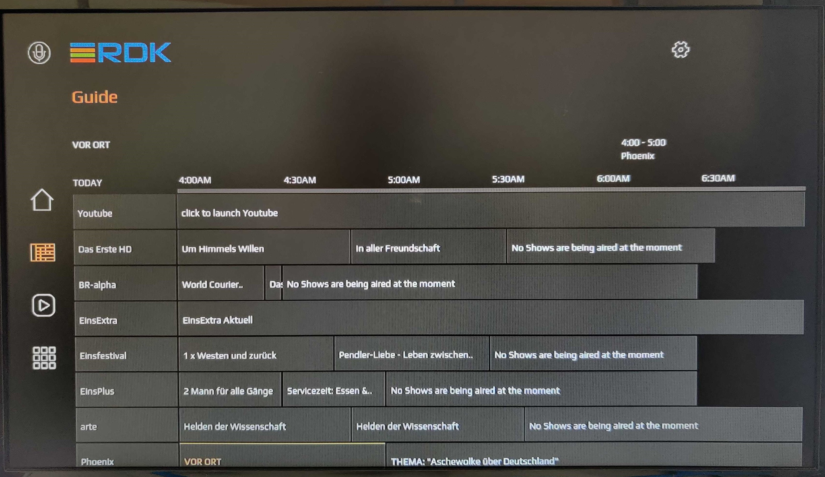 •  EPG/Guide can be invoked by clicking on the second icon of the side panel.