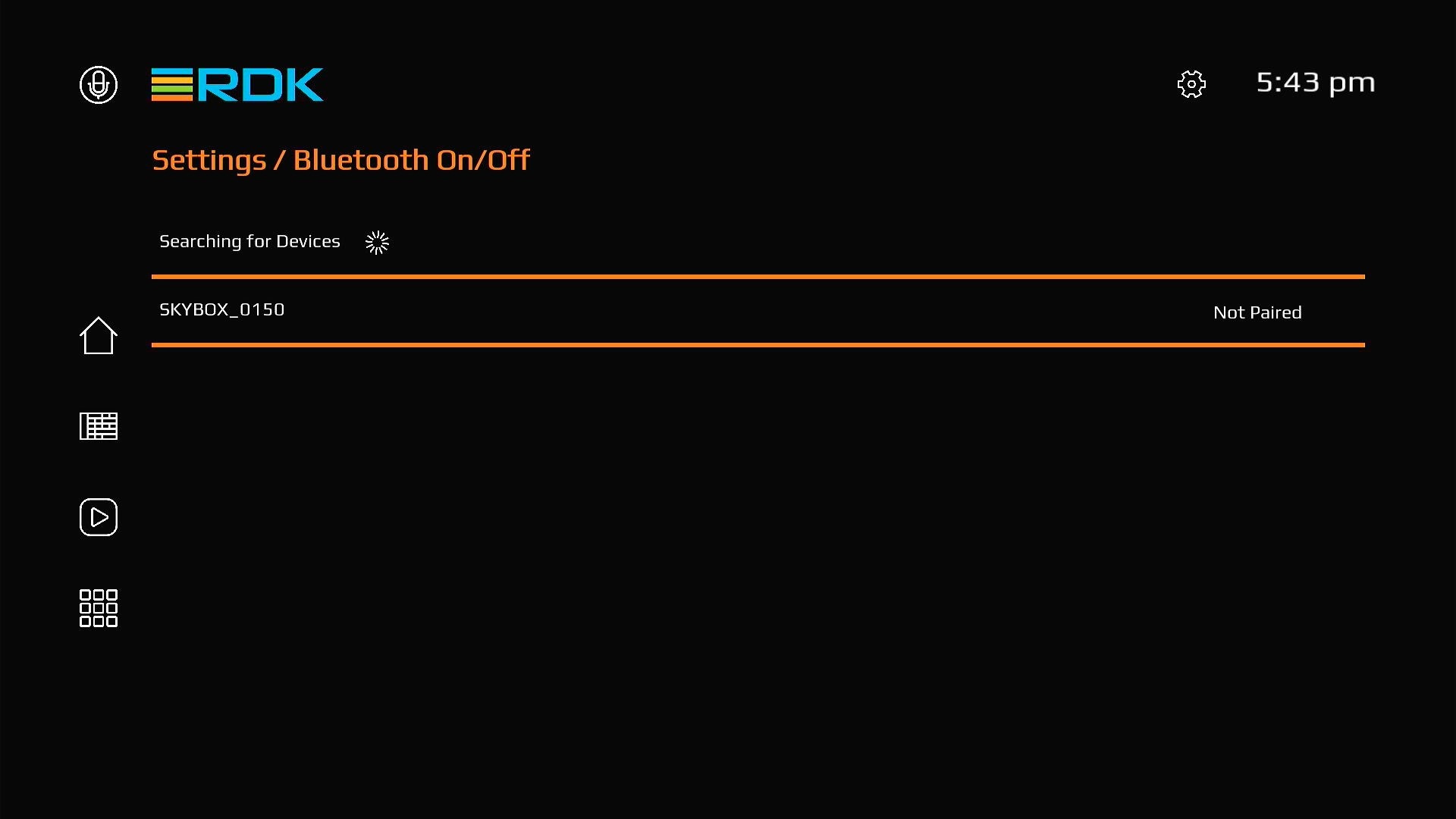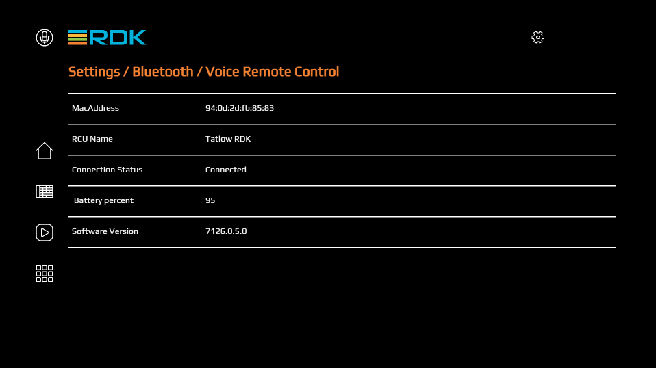Note: this feature of automatic RCU pairing requires RCU model support integrated with BLERCUDaemon at platform firmware build time and RemoteControl plugin enabled. If your RCU and platform does not support this feature yet, you can still pair your RCU using the Classic Bluetooth plugin based RCU pairing through "Settings" menu detailed in later section - "Pair Remote Control".