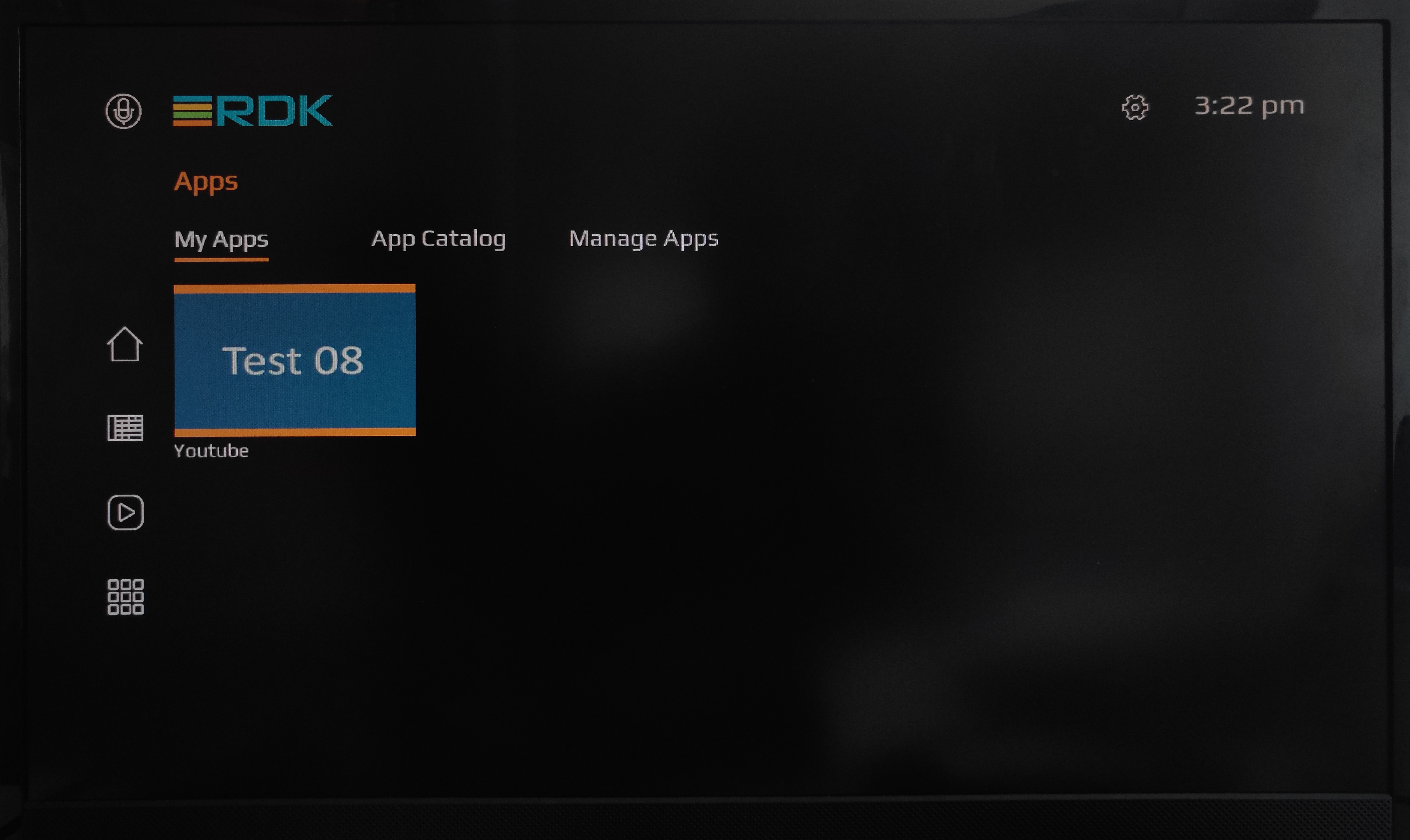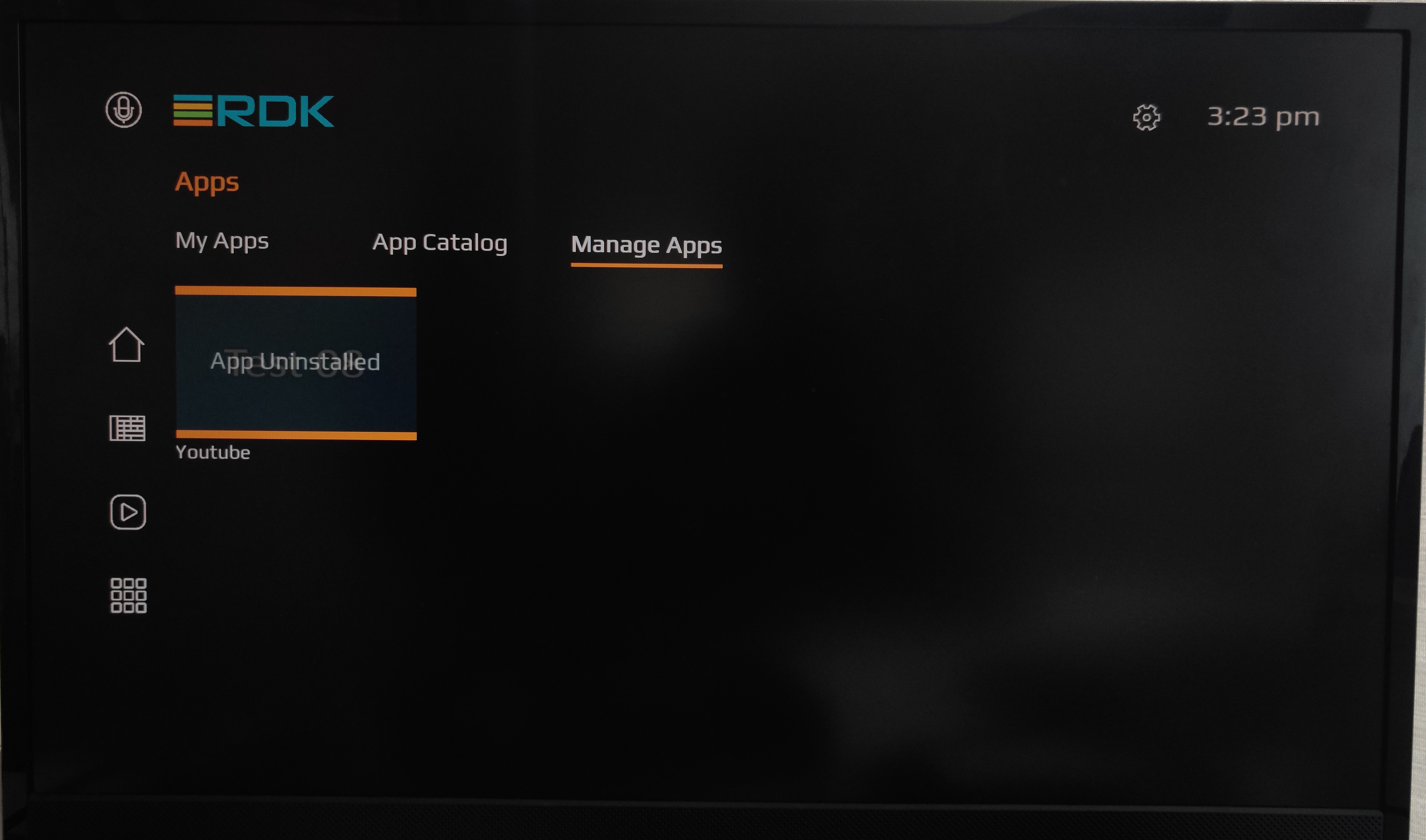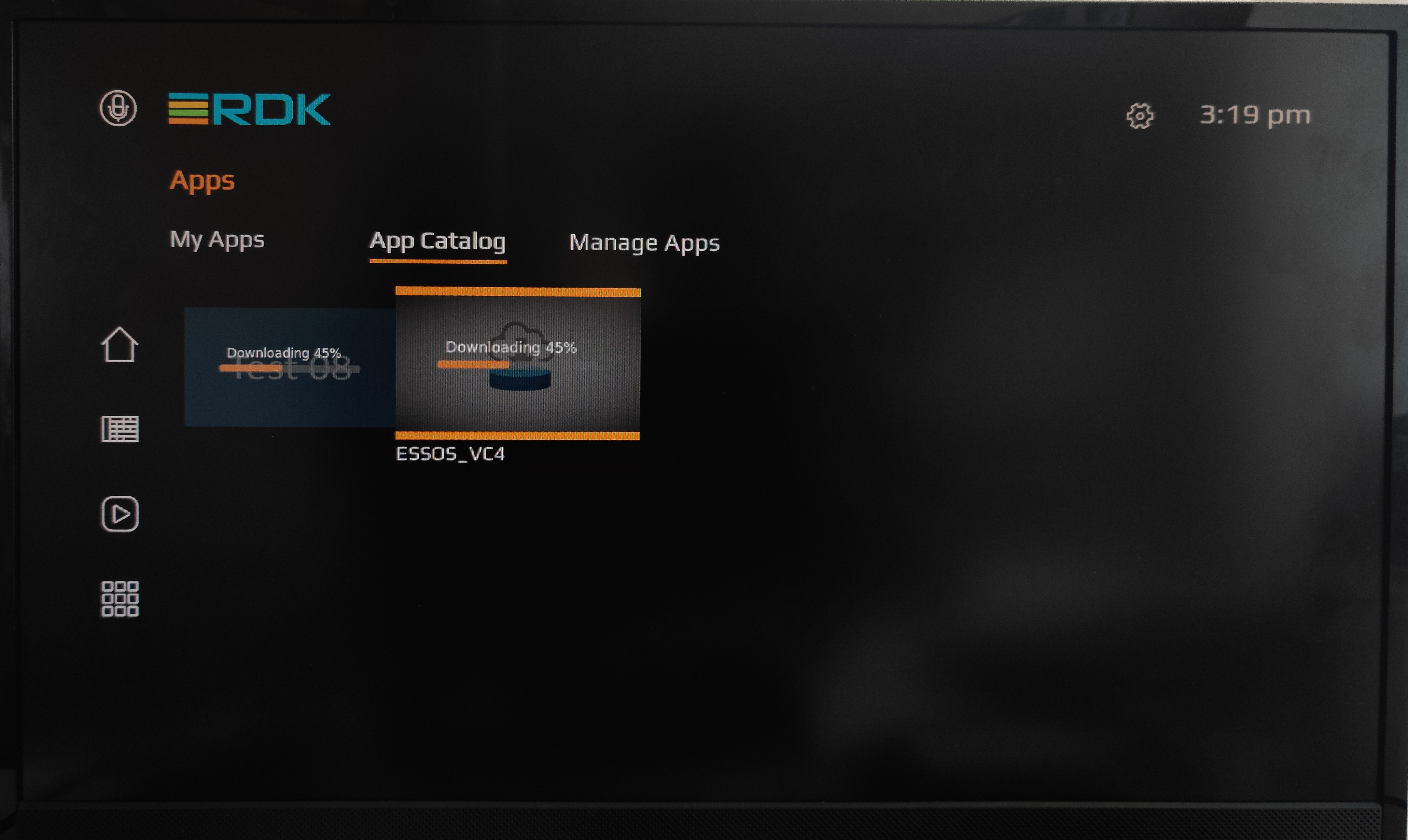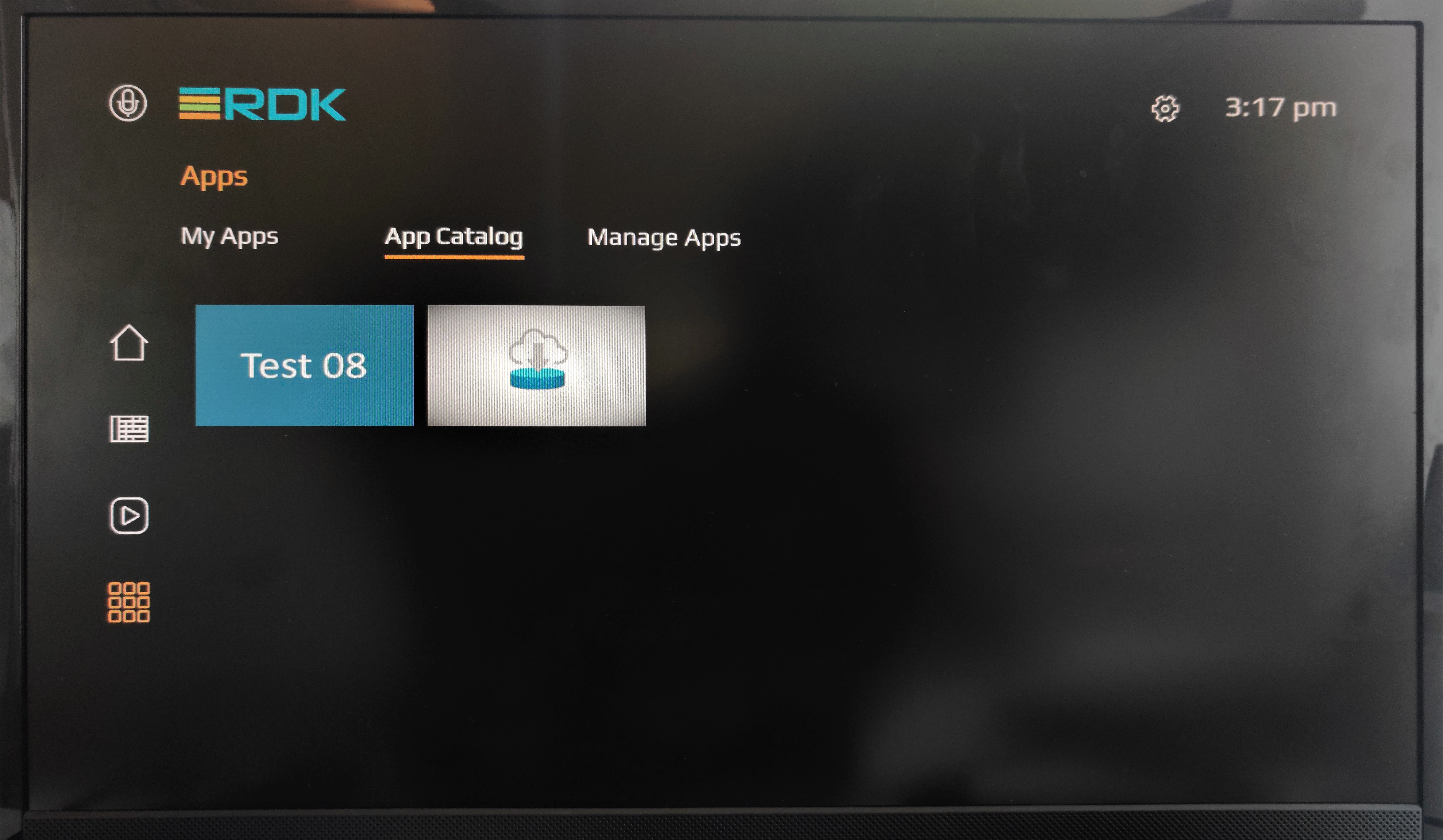 On selecting the Apps Icon from left banner; User shall be presented a new page with 3 tabs highlighted with "My Apps" which shall list the list of all installed app bundles on that particular platform. If no installed app bundles are found; user shall be presented with the "App Catalog" tab which will display all available downloadable app bundles from remote server from which user shall be able to install selected app. Installation progress shall be displayed when user interacts with that selected App Icon. After installation competes; that app will be displayed under "My Apps" as well as "Manage Apps" tabs. From "My Apps"; user shall be able to launch the App. To "EXIT" from that app instance; user need to press HOME key which will redirect him to UI HOME page. From "Manage Apps"; user shall be able to uninstall the installed App.