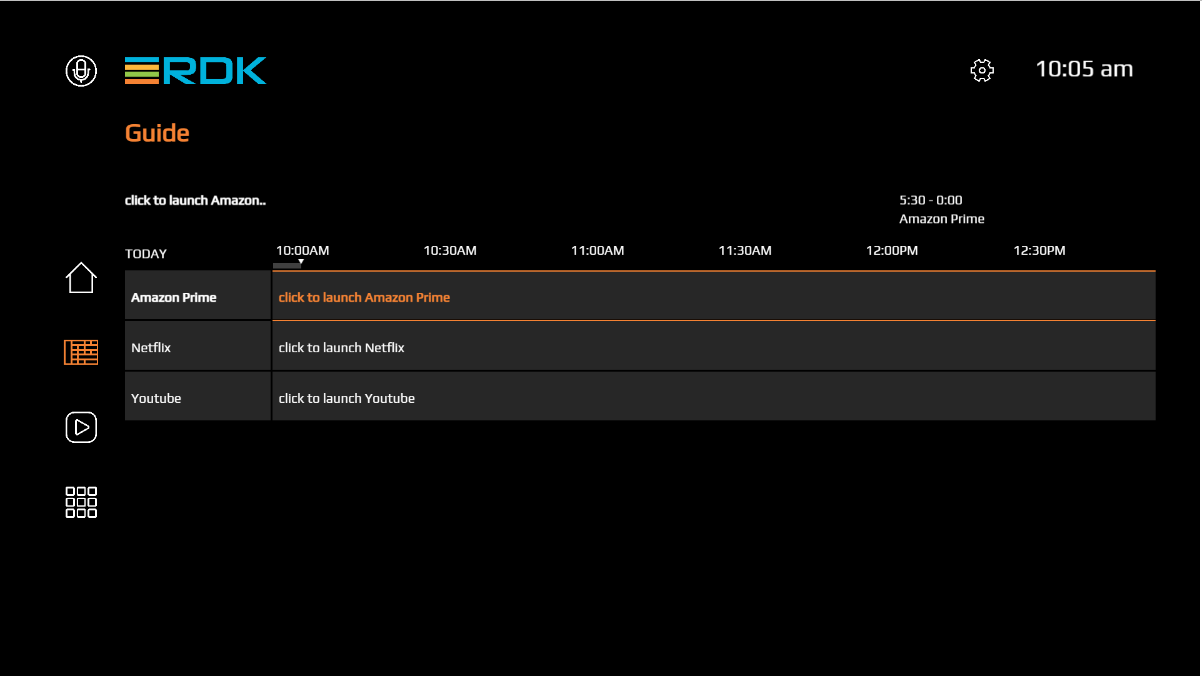 • Apps (Amazon , Netflix and YouTube etc) can be launched from the guide screen.