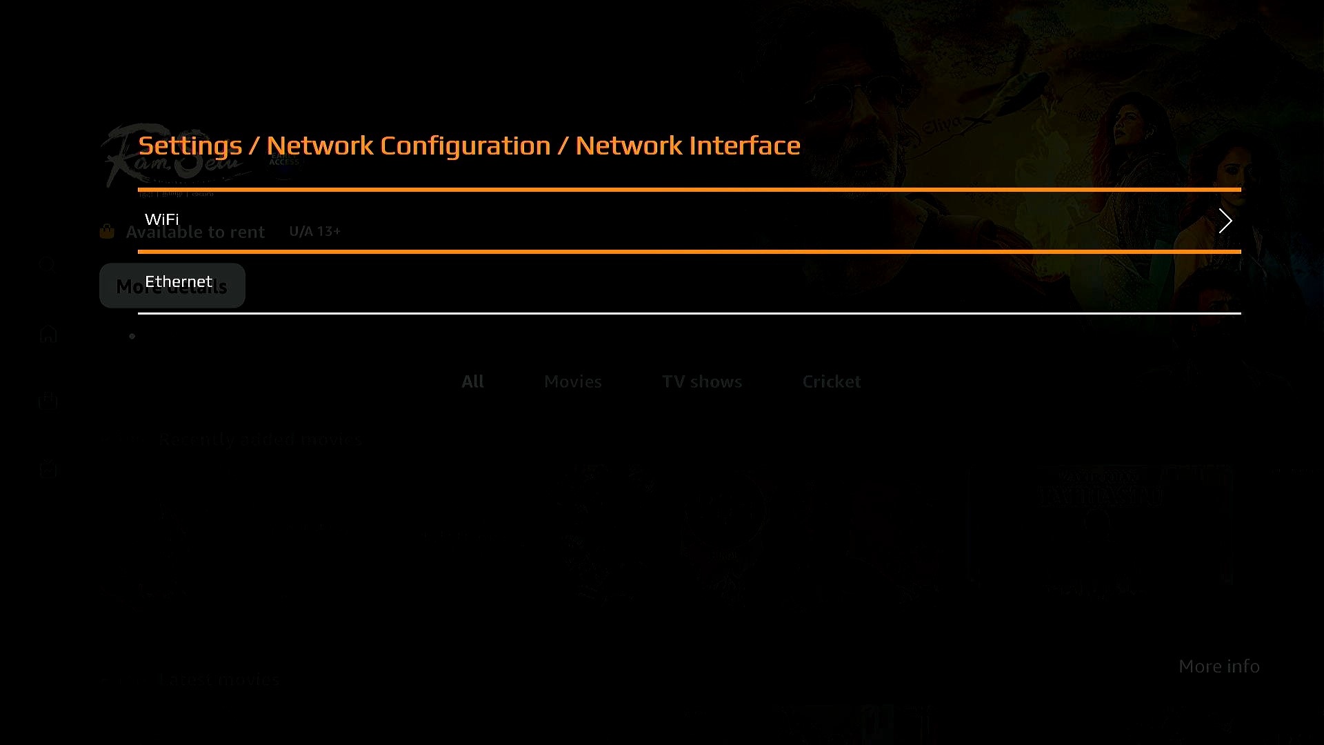 Preferred interface shall be ETHERNET and if selected, user shall be taken directly to home screen and set default interface to ETHERNET.