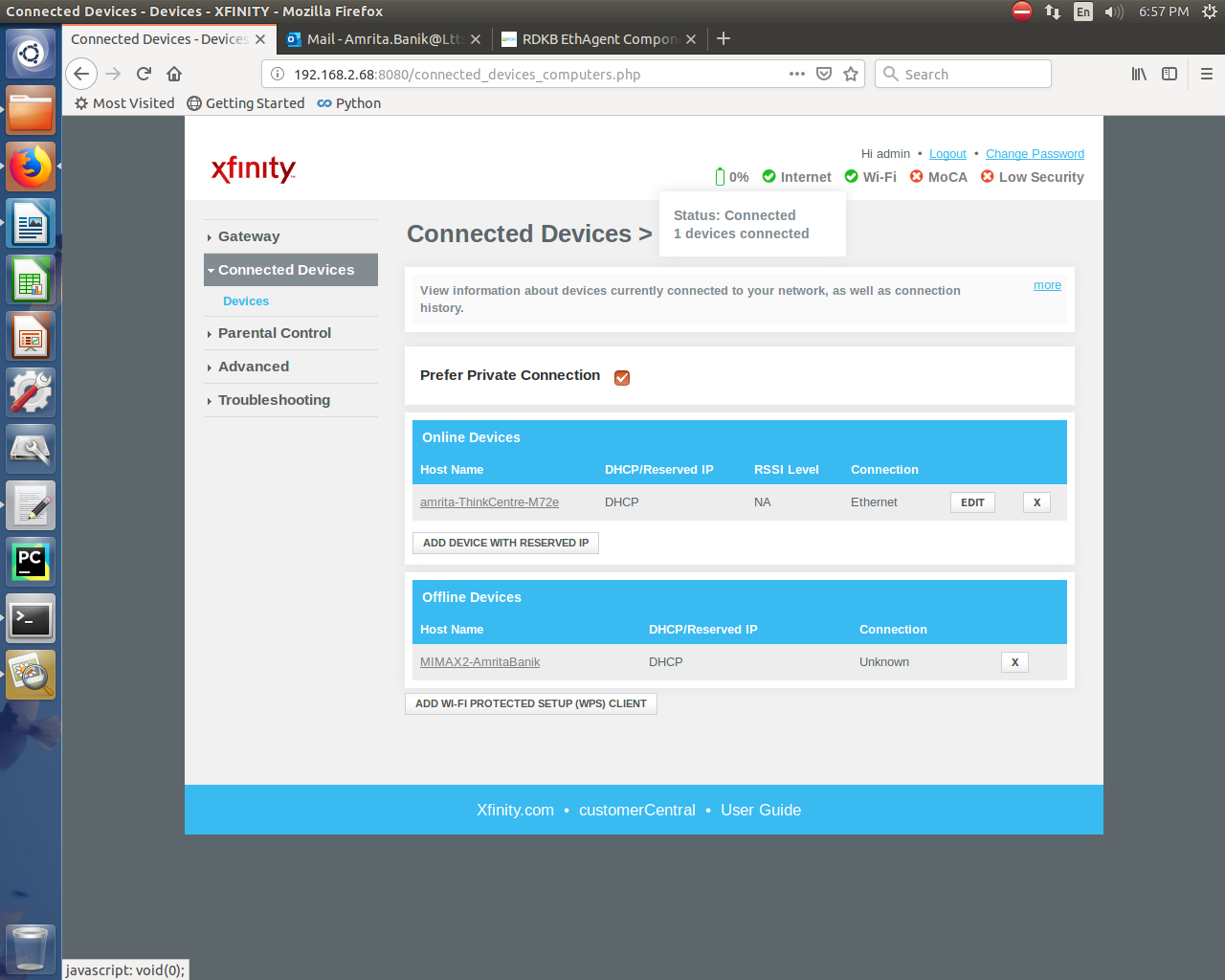 Step2: Login to Web UI either through Remote Management (erouter0 IP Address:8080) or through connected wired / wireless clients (Gateway IP Address) and go to “Connected Device” page