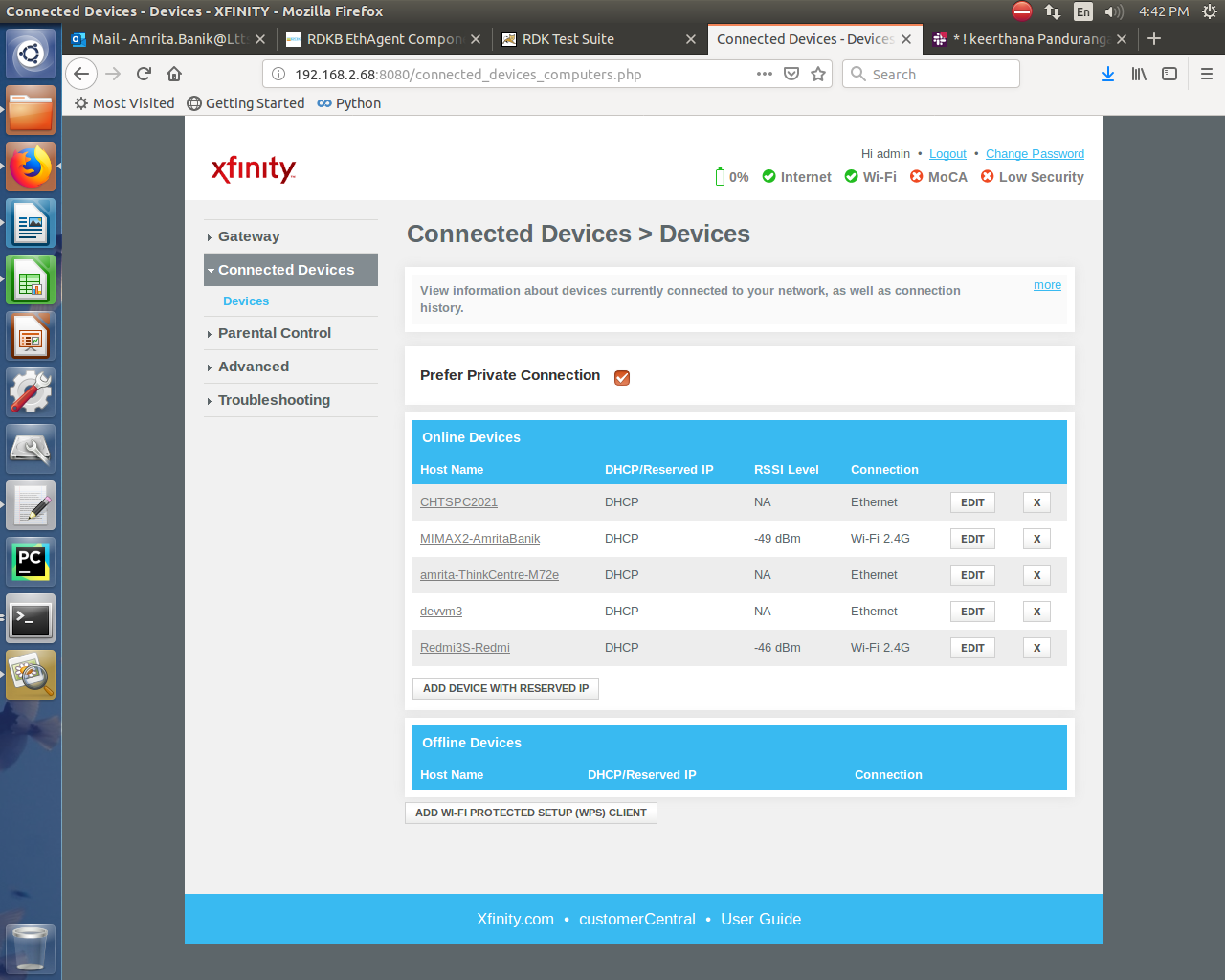 Step5: Verify that Offline Device section is showing data related to offline(previously connected) wired/wireless client