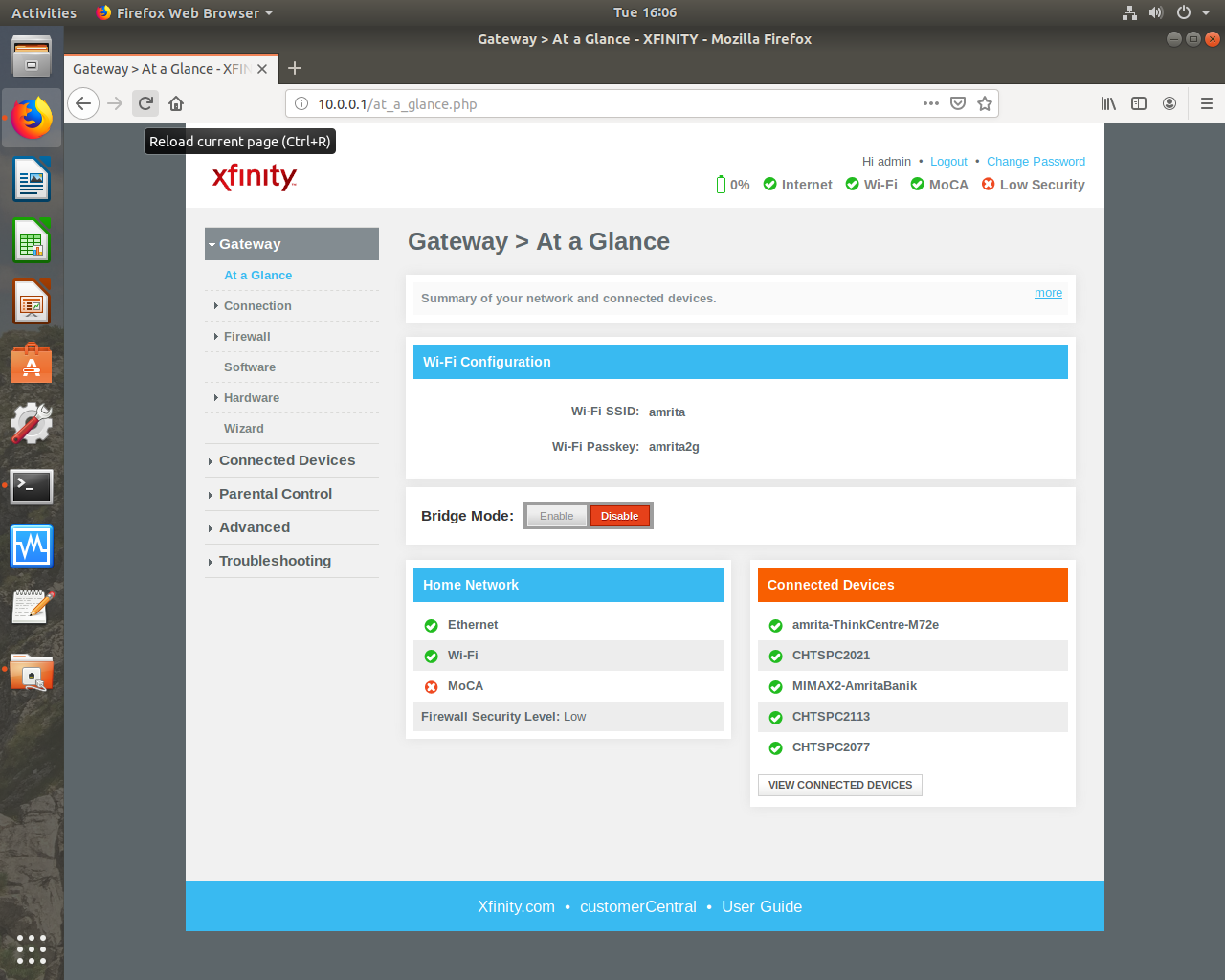 Step10: Verify the no. of connected devices displayed while hovering the mouse on the "Internet" tab displayed on the top right of "at-a-glance" page in Web UI