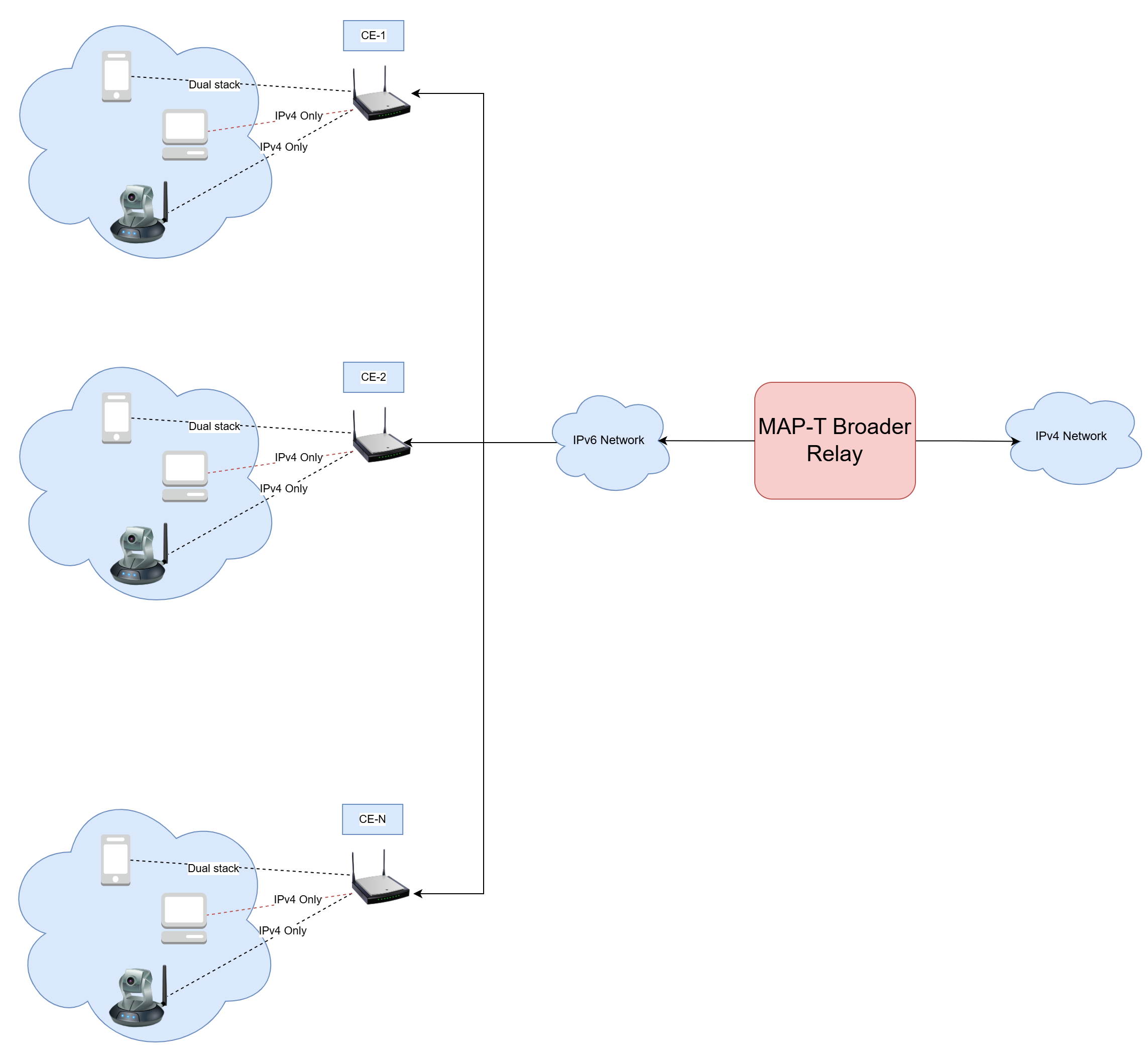 All v6 packets matching the CE’s MAP‑T rule prefix