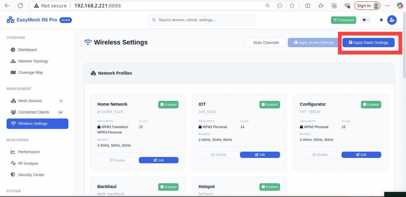 2022 Apr 28 17:44:01 Filogic-GW [OneWifi][2086]: WiFi radio radio1 is set to UP
