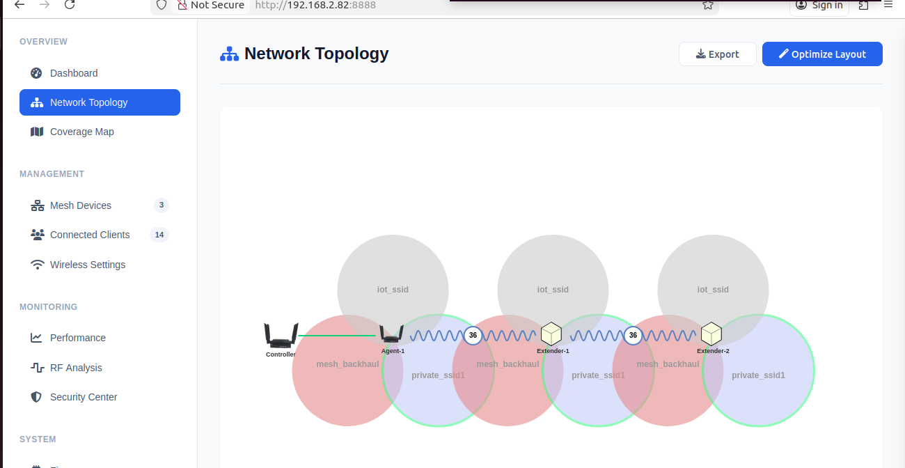 root@Filogic-GW:~# iw dev phy#0 Interface wifi1.1.sta1 ifindex 31 wdev 0xa addr 02:02:21:ec:07:97 type AP/VLAN channel 36 (5180 MHz), width: 80 MHz, center1: 5210 MHz 4addr: on Radios: 0 1 2 Interface mld0 ifindex 30 wdev 0x9 addr 02:02:30:ec:07:95 ssid private_ssid type AP multicast TXQ: qsz-byt qsz-pkt flows drops marks overlmt hashcol tx-bytes tx-packets 0 0 0 0 0 0 0 0 0 MLD with links: - link ID 1 link addr 02:02:20:ec:07:93 channel 36 (5180 MHz), width: 80 MHz, center1: 5210 MHz txpower 23.00 dBm Radios: 0 1 2 Interface wifi2 ifindex 29 wdev 0x8 addr 02:02:30:ec:07:94 ssid private_ssid type AP channel 1 (5955 MHz), width: 160 MHz, center1: 6025 MHz txpower 12.00 dBm multicast TXQ: qsz-byt qsz-pkt flows drops marks overlmt hashcol tx-bytes tx-packets 0 0 0 0 0 0 0 0 0 Radios: 0 1 2 Interface wifi1.3 ifindex 28 wdev 0x7 addr 02:02:23:ec:07:99 type managed txpower 27.00 dBm multicast TXQ: qsz-byt qsz-pkt flows drops marks overlmt hashcol tx-bytes tx-packets 0 0 0 0 0 0 0 0 0 4addr: on Radios: 0 1 2 Interface wifi1.2 ifindex 27 wdev 0x6 addr 02:02:22:ec:07:98 ssid iot_ssid type AP channel 36 (5180 MHz), width: 80 MHz, center1: 5210 MHz txpower 23.00 dBm multicast TXQ: qsz-byt qsz-pkt flows drops marks overlmt hashcol tx-bytes tx-packets 0 0 0 0 0 0 0 0 0 Radios: 0 1 2 Interface wifi1.1 ifindex 26 wdev 0x5 addr 02:02:21:ec:07:97 ssid mesh_backhaul type AP channel 36 (5180 MHz), width: 80 MHz, center1: 5210 MHz txpower 23.00 dBm multicast TXQ: qsz-byt qsz-pkt flows drops marks overlmt hashcol tx-bytes tx-packets 0 0 0 0 0 0 0 0 0 Radios: 0 1 2 Interface wifi1 ifindex 25 wdev 0x4 addr 02:02:20:ec:07:93 type AP multicast TXQ: qsz-byt qsz-pkt flows drops marks overlmt hashcol tx-bytes tx-packets 0 0 0 0 0 0 0 0 0 Radios: 0 1 2 Interface wifi0.2 ifindex 24 wdev 0x3 addr 02:02:12:ec:07:96 ssid iot_ssid type AP channel 6 (2437 MHz), width: 20 MHz, center1: 2437 MHz txpower 27.00 dBm multicast TXQ: qsz-byt qsz-pkt flows drops marks overlmt hashcol tx-bytes tx-packets 0 0 0 0 0 0 0 0 0 Radios: 0 1 2 Interface wifi0.1 ifindex 23 wdev 0x2 addr 02:02:11:ec:07:95 ssid mesh_backhaul type AP channel 6 (2437 MHz), width: 20 MHz, center1: 2437 MHz txpower 27.00 dBm multicast TXQ: qsz-byt qsz-pkt flows drops marks overlmt hashcol tx-bytes tx-packets 0 0 0 0 0 0 0 0 0 Radios: 0 1 2 Interface wifi0 ifindex 22 wdev 0x1 addr 02:02:10:ec:07:92 ssid private_ssid type AP channel 6 (2437 MHz), width: 20 MHz, center1: 2437 MHz txpower 27.00 dBm multicast TXQ: qsz-byt qsz-pkt flows drops marks overlmt hashcol tx-bytes tx-packets 0 0 0 0 0 0 0 0 0 Radios: 0 1 2 root@Filogic-GW:~#